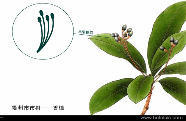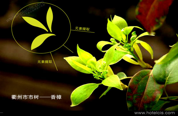 1、標志采用衢州市市樹“香樟”為創意元素,香樟屬于樟科的常綠性喬木,上千年,可稱為參天古木,為優秀的園林綠化林木。有香氣,喻為酒店的服務周全。體現冠發君悅大酒店人性化的服務。